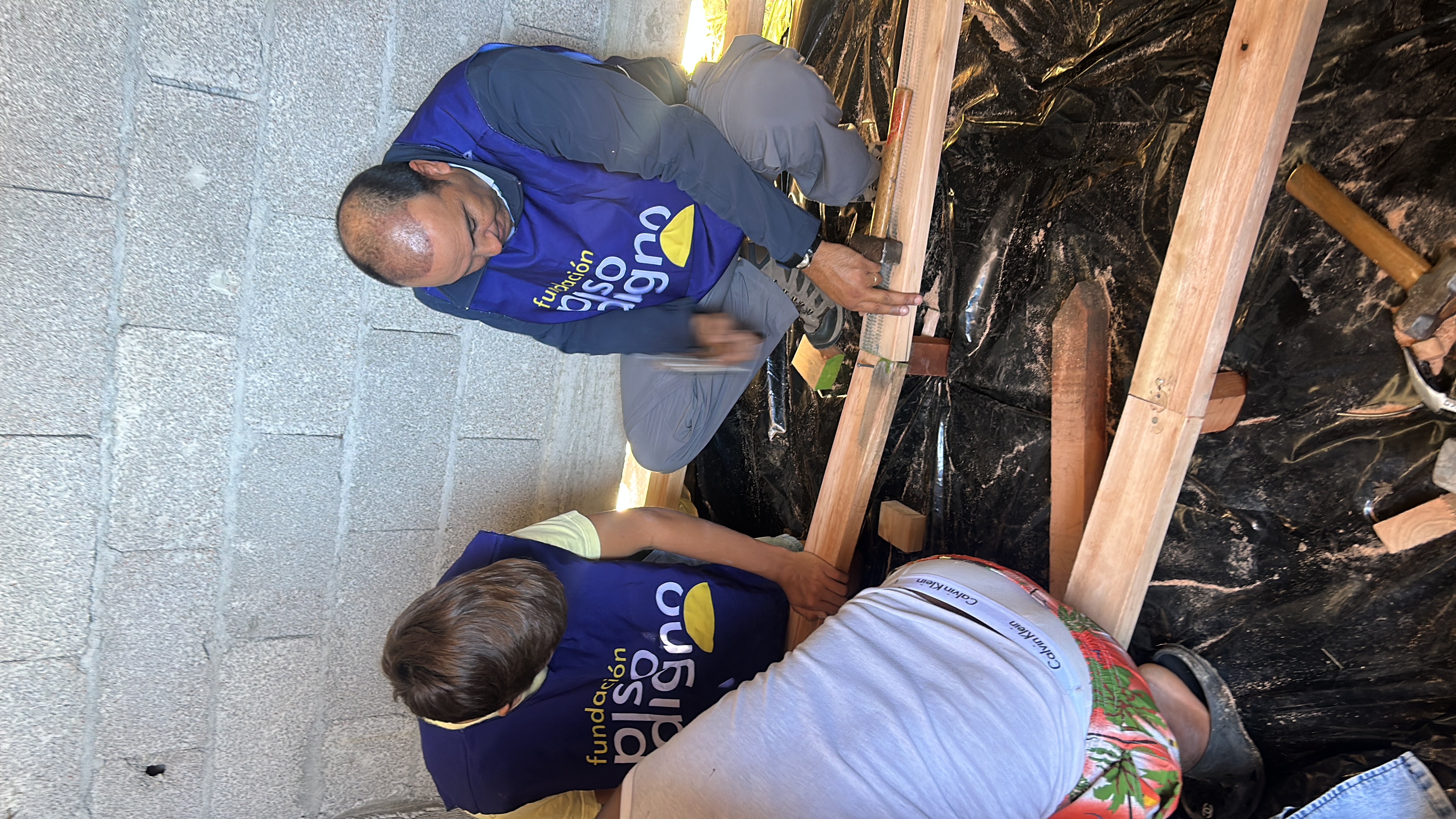During the morning, they built two floors in local homes, contributing their labour, effort, and solidarity. It was a collective task, carried out side by side with residents and families, who welcomed us with gratitude, hope, and a spirit of collaboration.